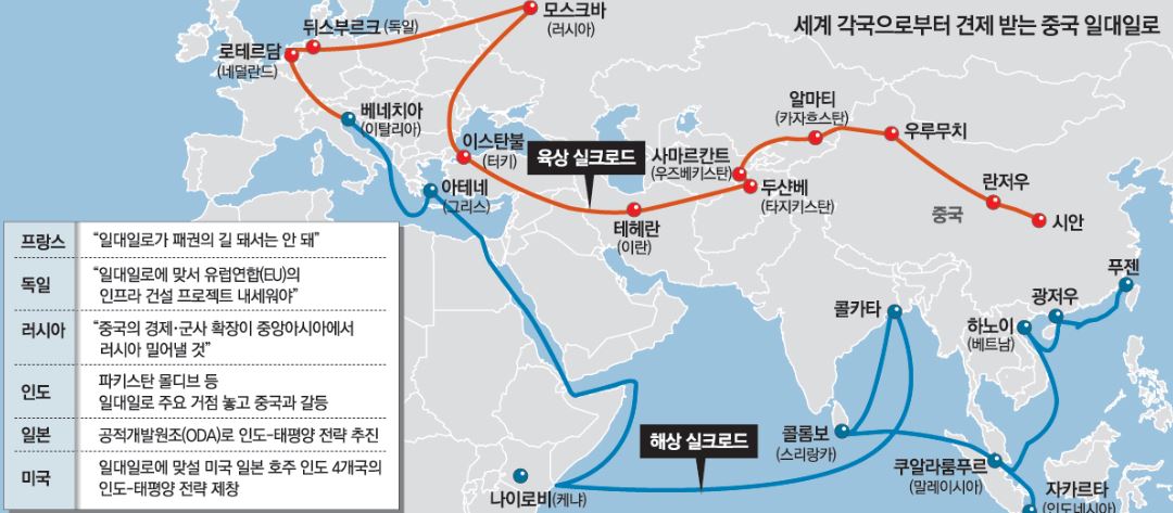 문제는 중국의 입장입니다. 나오고 있는 기사를 보면 왕이 부장은 한국을 가까운 이웃이자, 친구, 파트너로 칭하며 한한령을 완전히 해제할 수 있다는 등 대단히 유화적인 제스처를 취하고 있는 것으로 알려져 있습니다만 현재 중국의 입장에서 본다면 한국은 여전히 중국과 적대적인 관계를 보이고 있는 미국의 강력한 우방 중 한 곳 입니다. 실제 한국이 미국의 인도 태평양 전략의 한 축을 담당하게 되면 중국의 일대일로 정책이 상당한 타격을 받을 것으로 예상이 됩니다.