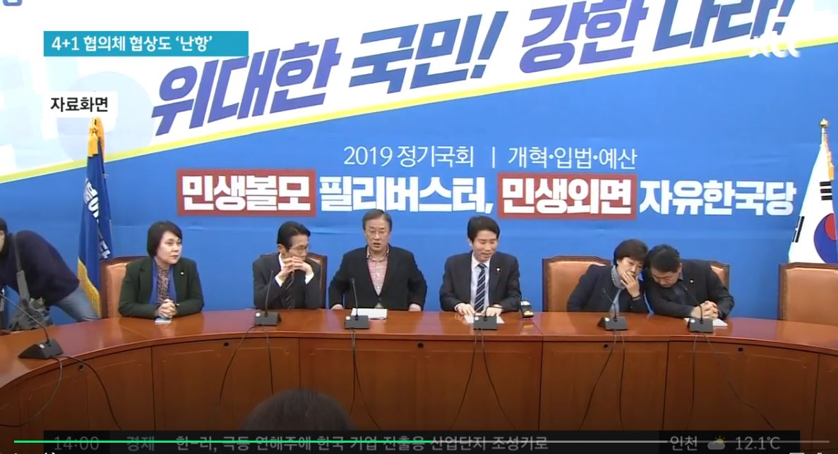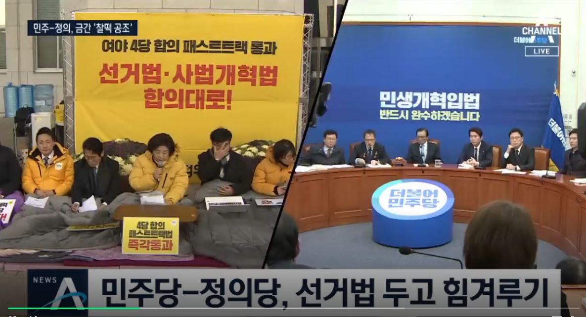 4(민주당, 정의당, 민평당, 바른미래당)+1(대안신당) 연대를 통해 손에 잡힐 것 처럼 다가왔던 패스트트랙 통과 가능성이 민주당과 정의당의 갈등으로 다시 멀어지는 모습입니다.