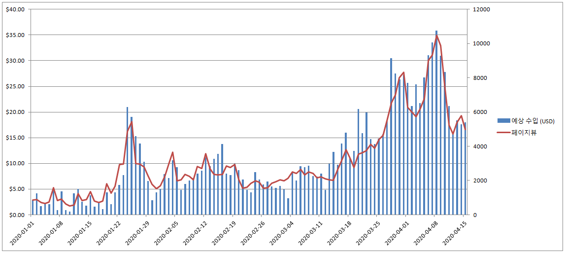 하지만 4.15 총선 관련 예측 글 시리즈로 방문 수가 급증하고 아울러 하루 수익이 10달러를 우습게 넘어서면서 마음가짐이 좀 달라지더군요.