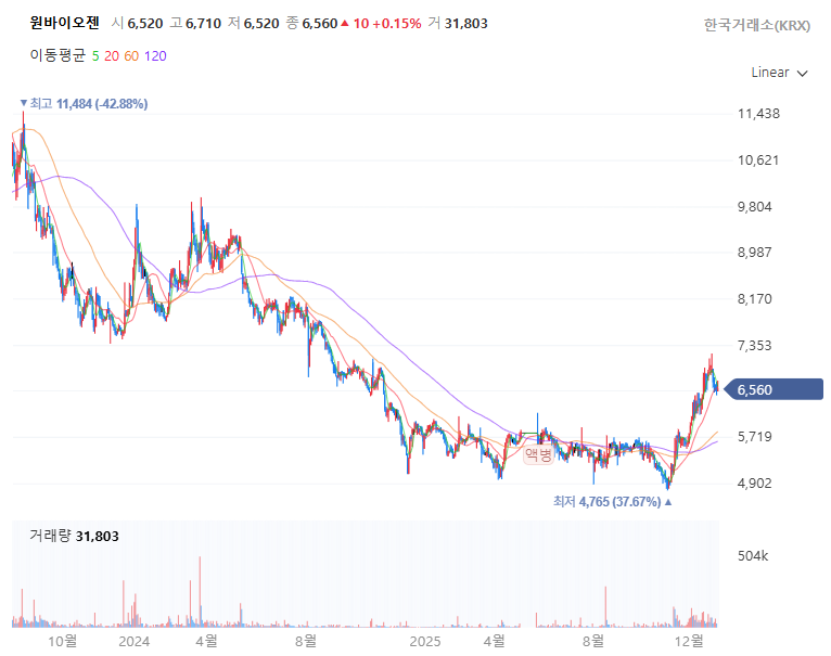 - 2025년 하반기: 실적 개선세가 가시화되면서 거래량이 동반된 점진적 우상향 곡선을 그리기 시작했습니다. 특히 최근 이동평균선들이 수렴 후 정배열로 확산되는 골든크로스가 발생하며 기술적 반등 추세를 강화하고 있습니다.